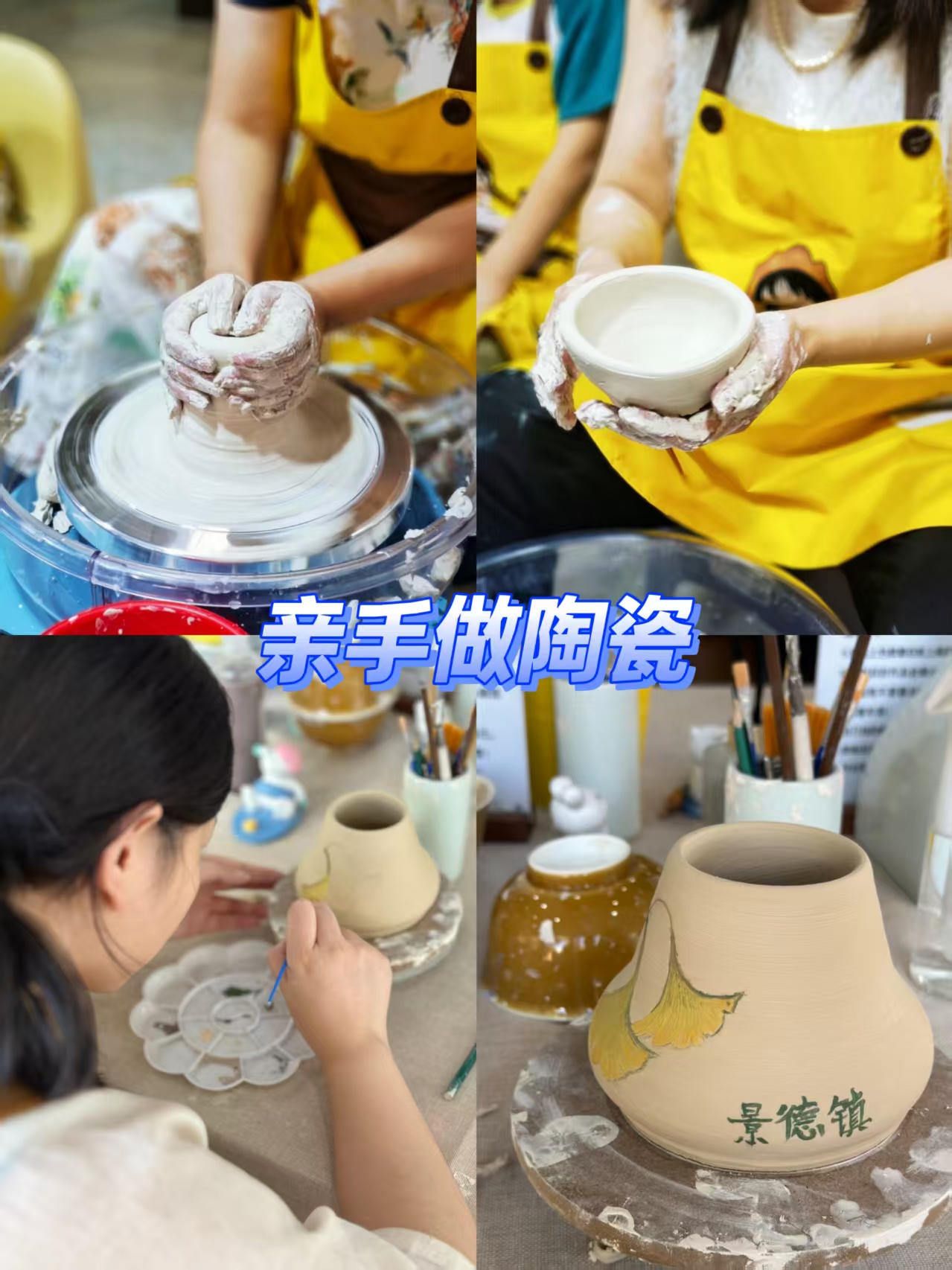 ✅ 青花大器创作:在专业陶艺师指导下,在素坯上画专属青花图案!烧制完成可带回家,独一无二的暑假纪念品~